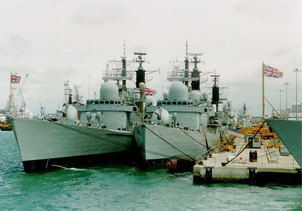 Vyvázané torpédoborce ve válečném přístavu |