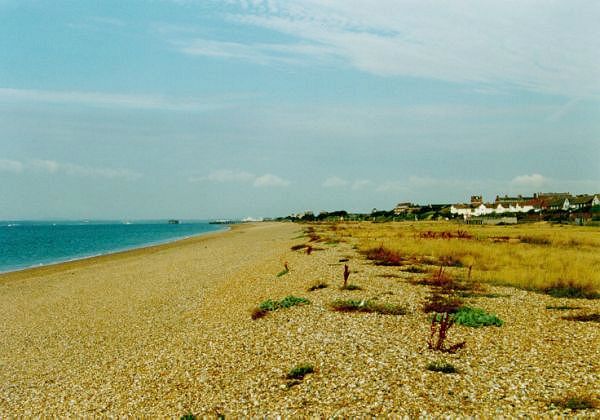 Oblázková pláž v Southsea |