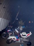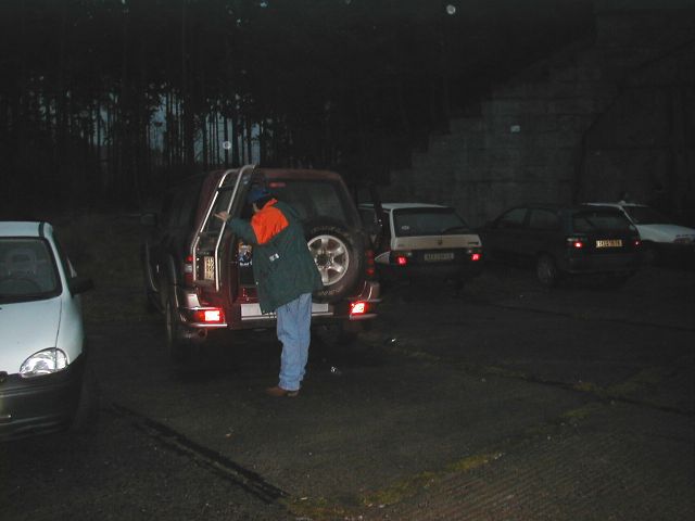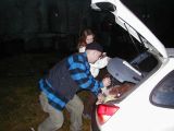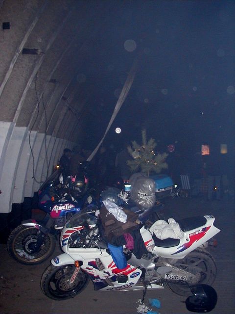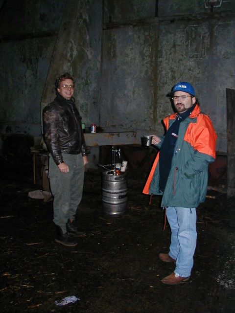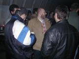 Ježto jsme nestihli sraz v Mimoni ve 3 a do dalšího srazu v 16:30 to bylo ještě dost daleko, rozhodli jsme se najít hangár sami. Robert se ukázal jako dokonalý navigátor a trefili sme to napoprvé (no pravda je, že on už tam jednou byl). Náš příjezd byl nedočkavě očekáván, vícemeně proto, že jsme vezli sud s pivem. Jinak by po nás pravděpodobně neštěkla ani místní liška. Prostor před hangárem byl plný lidí, aut. Chtěl jsem vyrobit nějaké dokonalé dokumentační foto, ale už byla tma. Já na tom letišti ještě nikdy nebyl, takže to na mě udělalo patřičný dojem. Je to úžasný a hnusný zároveň.