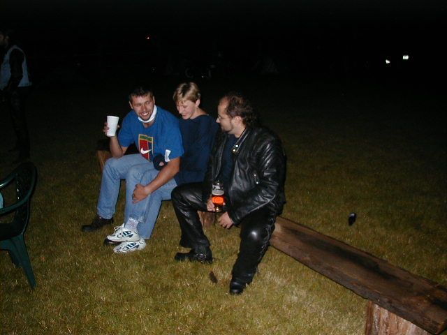 Někdy po 11 večer sem upadl do bezvědomí. Omlouvám se všem, které těšila moje přítomnost a kterým jsem svým ostrovtipem a svojí elegancí rozjasňoval temný večer. Jednak jsem vypil nějak moc piva, takže se mi zdálo, že po mě všechny přítomné dámy vilně koukají (vždycky když popiju se mi zdá že po mě dámy vilně koukají), ale když se mi zdálo, že na mě vilně kouká Honza Vokráčka, přišlo mi rozumný jít spát. Taky jsem byl dost grogy, protože role pořadatele je silně vyčerpávající zkušenost. Zažijete to sami na dalších ročnících :-) Ještě jsem zaregistroval absenci Švéda, který v noci kamsi odjel. Kdo viděl jak vypadá .... no teda .. jen doufám že dorazil OK. Taky kolem mě protlačil blátivý muž svoje blátivé XJR. Ono odjet v noci po té rozmoklé cestě nebyl asi až tak dobrý nápad.