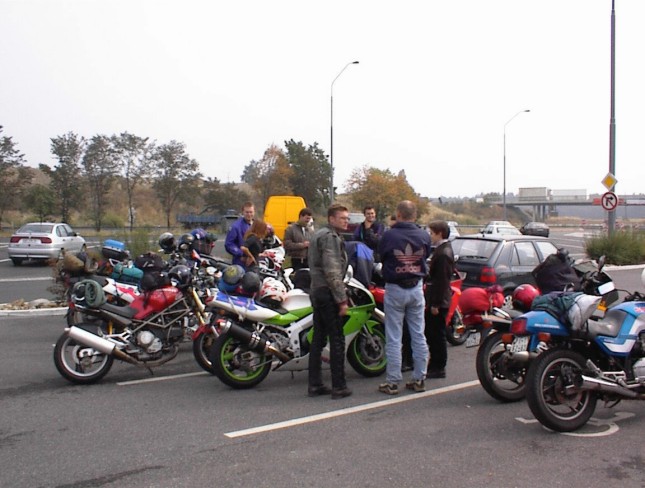 Zajímavý bylo sledovat vozový park. Celkem zajímavá sestava. Na 80 lidí 4 Afriky ? Dobrý ne ? A to tady působím ani ne 3/4 roku :-) Pokud vám někdo bude tvrdit, že mám provizi 5% z každýho prodanýho kusu, tak kecá. Mám 7% :-). Dalším zajímavým počtem byli tři Blekouši a dva Wild Stary. No a Rolandova Suzuki s motorem Jawa. Fakt dost dobrý.
